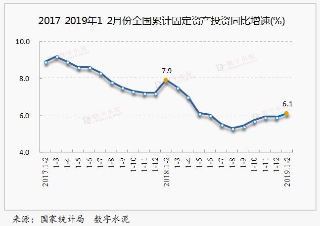 2019年1-2月份,全國固定資產投資(不含農戶)4.48萬億元,同比增長6.1%,增速比2018年全年提高0.2個百分點,低于去年同期1.8個百分點。從環比速度看,2月份固定資產投資(不含農戶)增長0.43%。