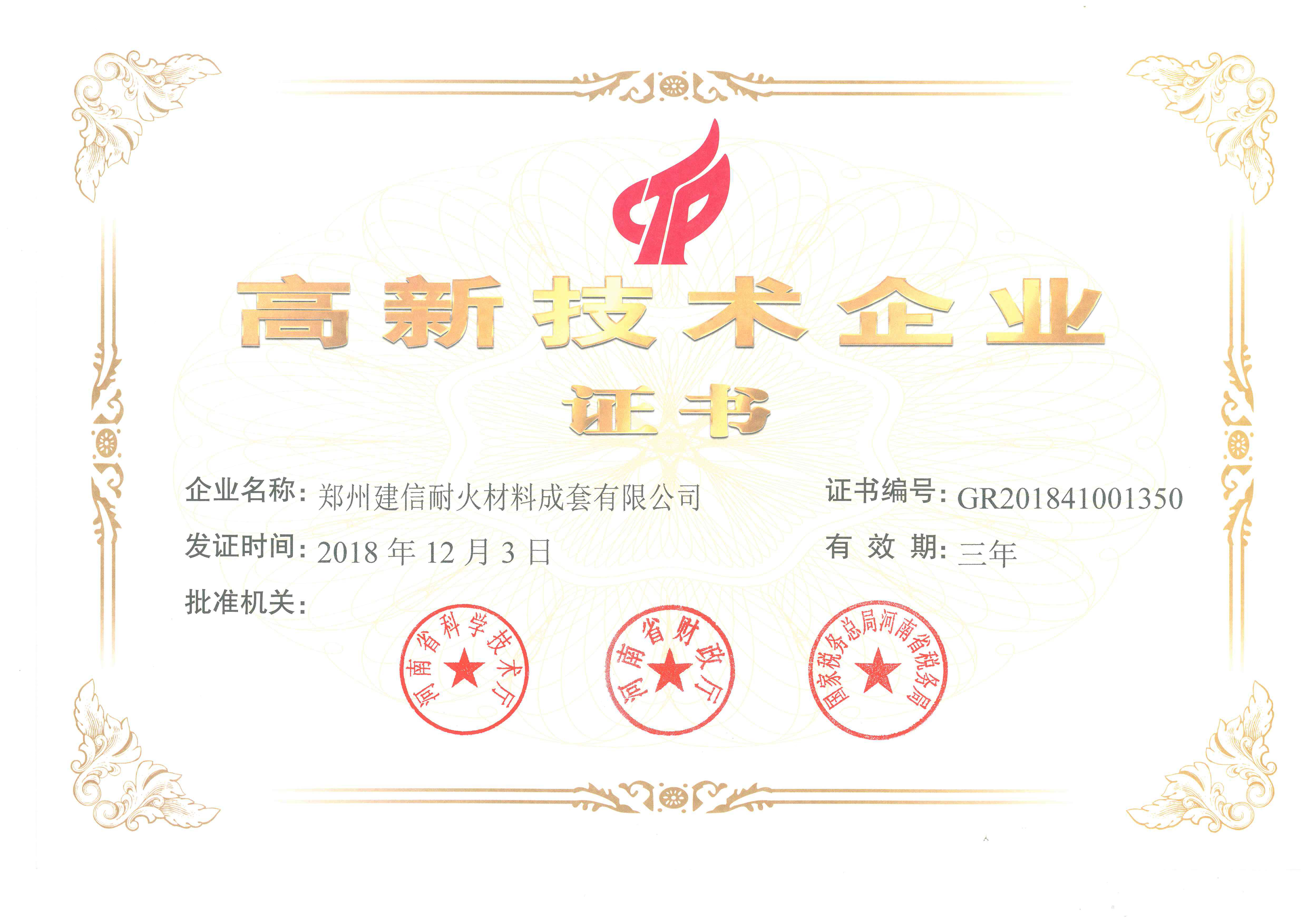 喜訊‖鄭州建信耐火材料成套有限公司榮獲“國家高新技術(shù)企業(yè)”認(rèn)定