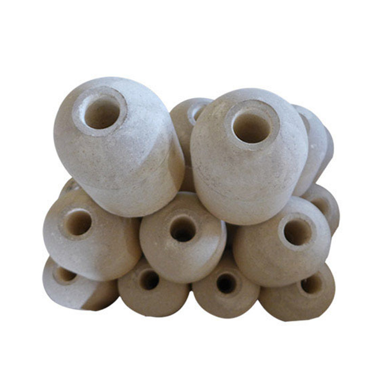 塞頭磚位于塞棒下端和水口磚呈嚴(yán)密配合的耐火材料質(zhì)磚。不澆注時它堵住水口保證不漏鋼。澆注時提高塞棒,使塞頭磚和水口磚產(chǎn)生間隙,鋼水從水口流出??刂迫舻母叩停烧{(diào)節(jié)鋼水的流出量。塞頭磚和棒芯間可用螺紋或銷子固定。塞頭磚可以是黏土質(zhì)、不燒高鋁質(zhì)及焦油浸漬的不燒高鋁質(zhì)磚。